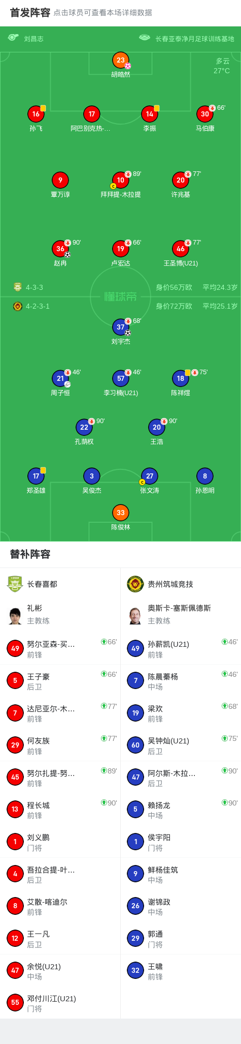 贵州筑城竞技2-1长春喜都,刘宇杰破门